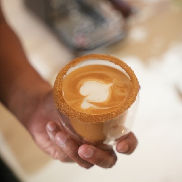 A rich espresso and butterscotch blend, perfectly frothed with the Breville Bambino Plus.