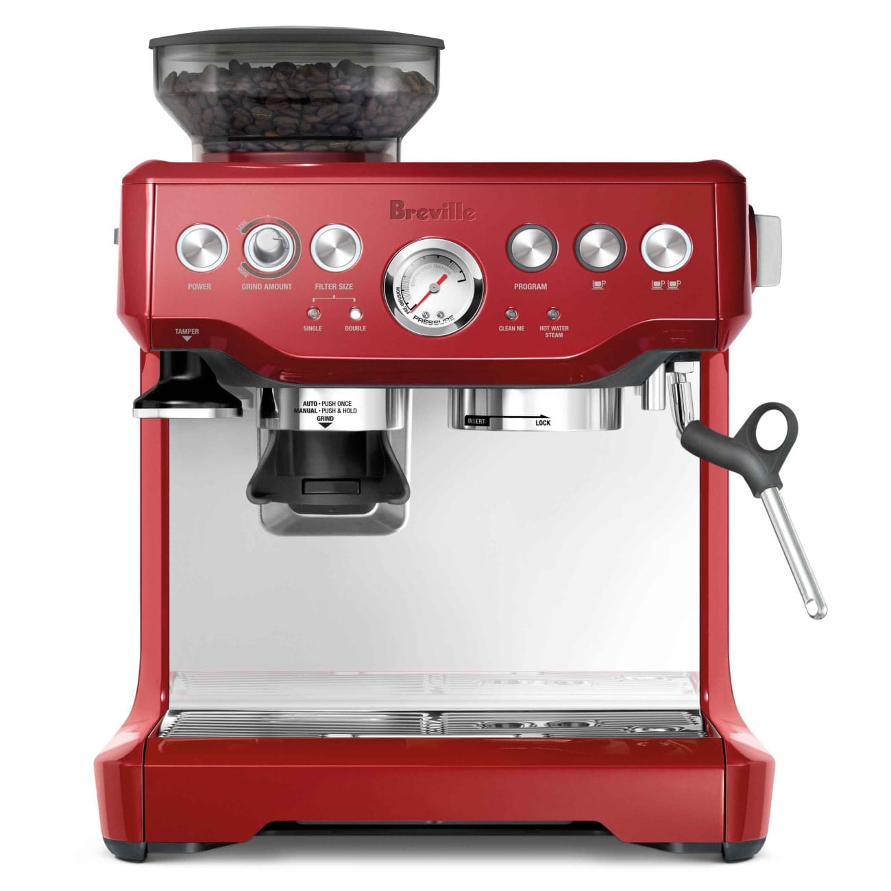 Full bodied coffee with rich and complex flavours is created using the ideal dose of 18g of freshly ground beans delivered by a professional style 54mm stainless steel portafilter.